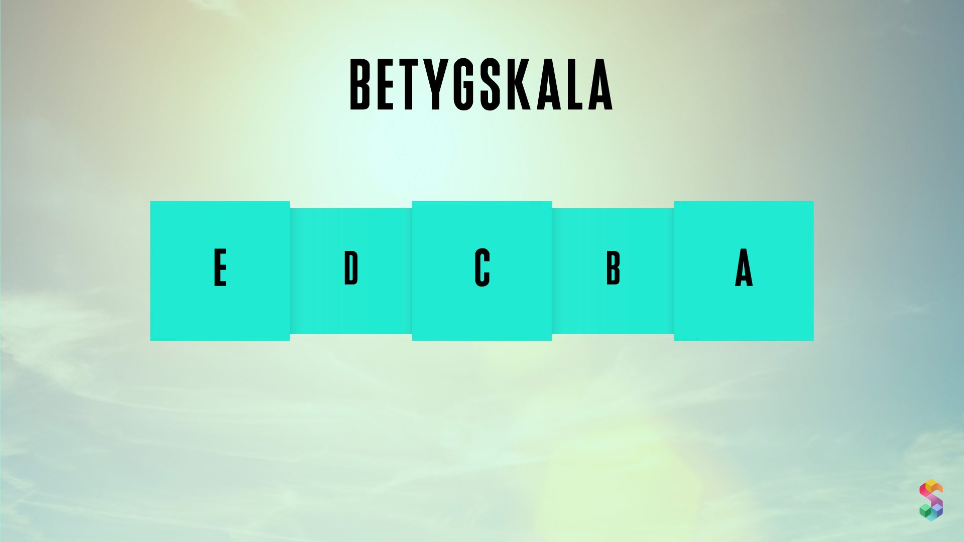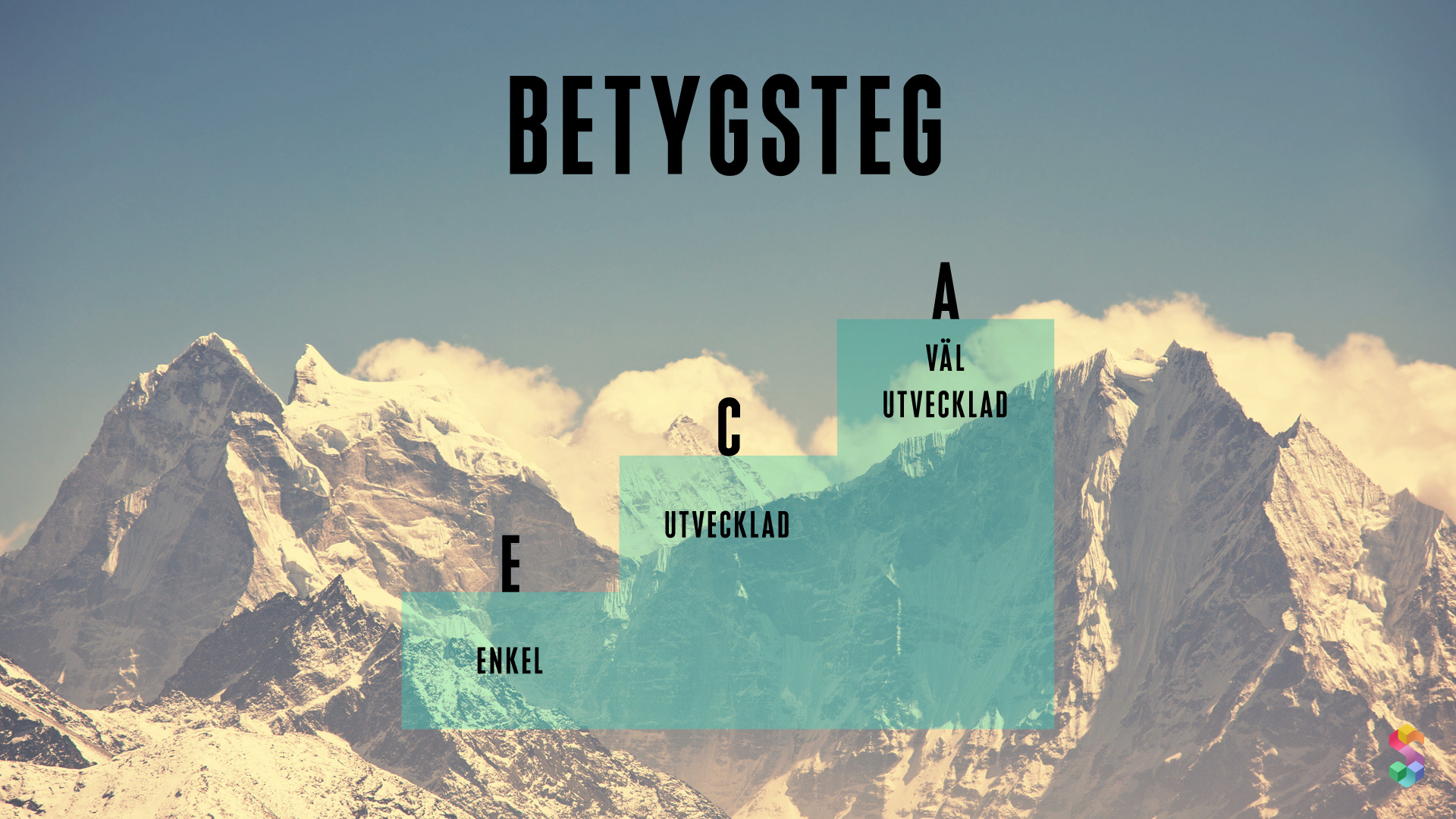 Det finns fem betygssteg E, D, C, B och A. Kunskapskraven uttrycker specifikt kunskapsnivåerna i de tre stegen E, C och A.