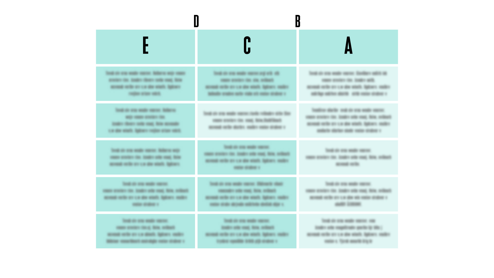 Betyg E står för enkel eller tillräcklig, C för utvecklad och A för välutvecklad.