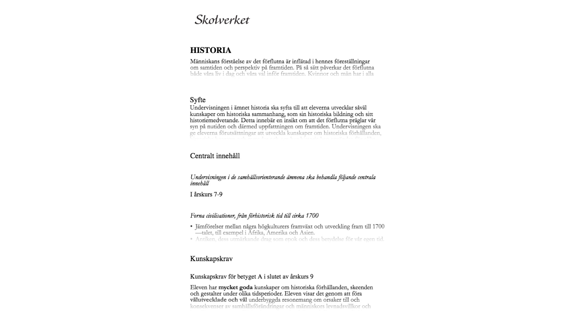 - Centralt innehåll anger vilken information och fakta undervisningen ska innehålla.