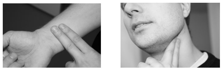 Du kan mäta din puls genom att hålla två fingrar mot halspulsådern eller handleden och