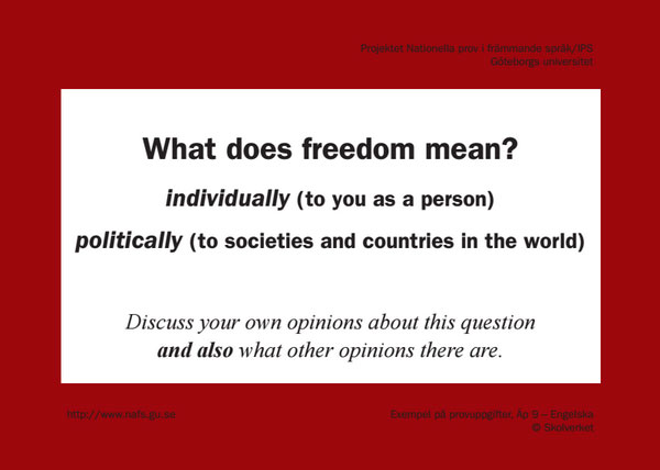 Det här provet och dess innehåll (texter, bilder, beskrivningar och frågor) © Skolverket, Prov - och bedömningsenheten. Källa: Skolverket.se.