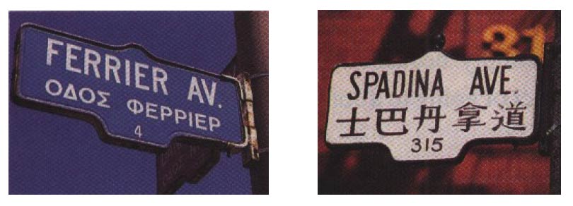 To make it 9 for its local residents as well as for tourists, the street signs are in two different languages: English plus the language of the 10 , whether Greek, Chinese, Portugese, Italian or East Indian.