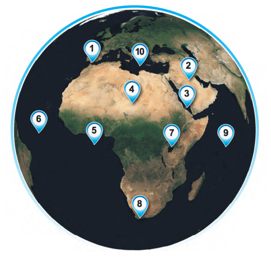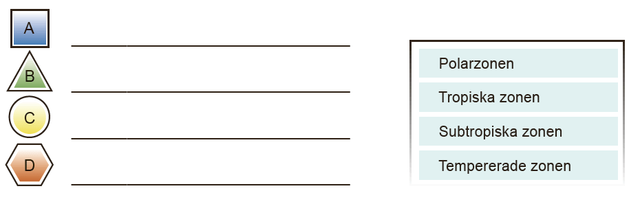 * Till en del av de öppna uppgifterna finns förslag till geografiska begrepp som du bör använda i ditt svar.