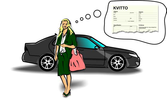 När hon lämnar tillbaka bilen får hon ett kvitto av biluthyraren.