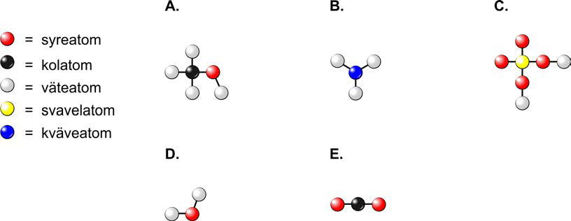- Vilket av alternativen A-E visar en modell av en organisk förening?