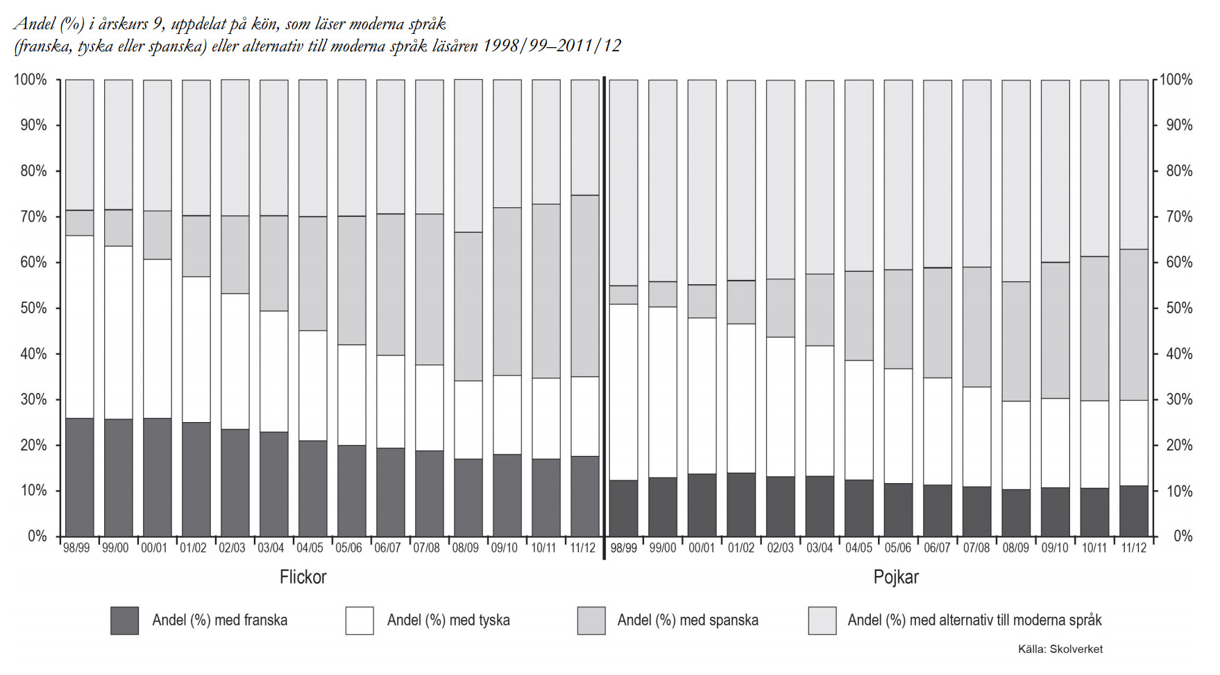 Nedanstående diagram visar hur stor andel (%) män respektive kvinnor som hade tillgång till internet i hemmet 2007.