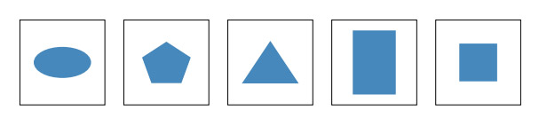 Robin har fem kort som visar olika former. Han blandar korten och tar slumpvis ett kort.